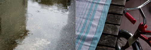 “And that clean, spare beauty is close at hand, formed out of the small habits and routines of daily life: vivid green mittens on a blue table paired with a white ladder juxtaposed with a fried egg in a white pan, its handle following the same diagonal as the wire some three thousand miles away; a galvanized tin tub brimming with rainbow Swiss chard allied to Stephanie’s photograph of an empty bed, the floral pattern of the blue and green sheets eerily echoing Mav’s journey to the farmer’s market.”