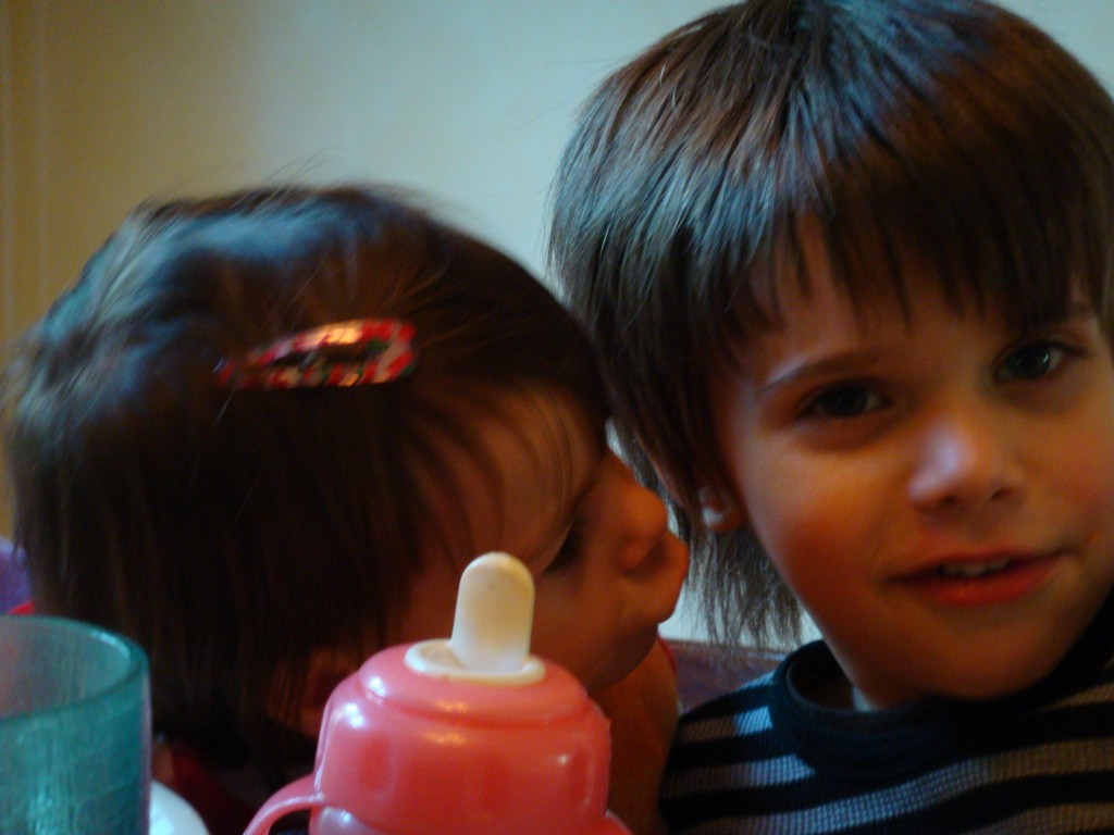 Then they sat to watch Wall-E, which Liliana hadn’t seen…and they were going to have ice cream sundaes later.  Liliana thought Kainoa was the cat’s pajamas, as you can see here.