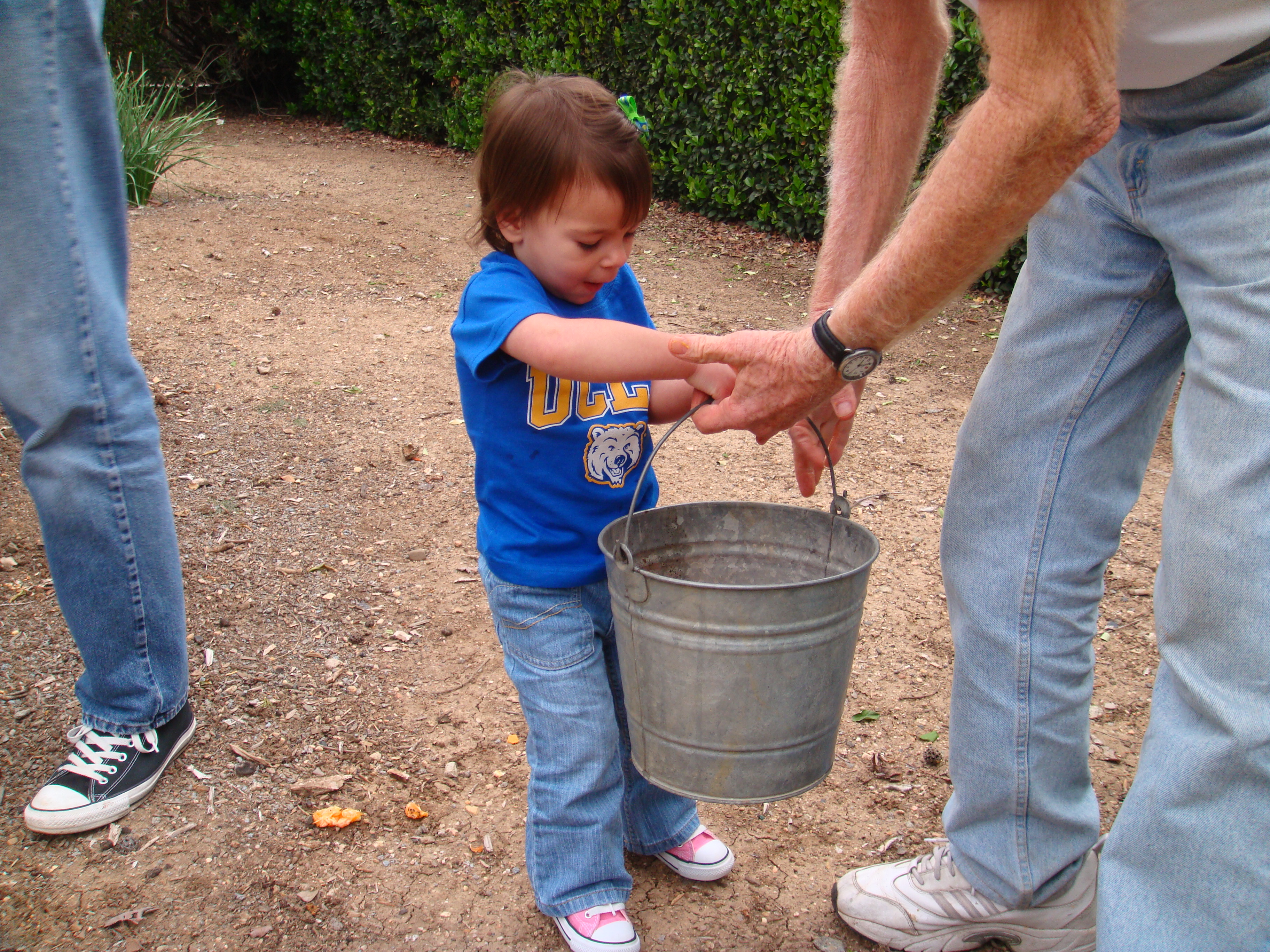 Another big day.  Today, Liliana met Dan’s family–his sister and her husband and kids, and Granddad Rich and Grandma Janice.  Rich has avocado and orange and grapefruit trees in the backyard–ones I’d like to transport to Minnesota!–and Liliana joined him in picking them for our breakfast.  Granddad peeled some for her, and she got a kick out of spitting out the seeds.