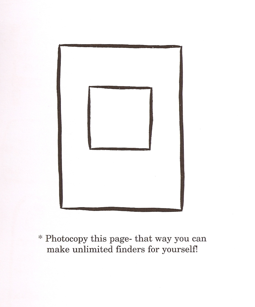 “Take the finder with you on a walk.  Look at familiar places with a new eye.  In your sketchbook, sketch out what you see.  What do you notice that you didn’t see before?”