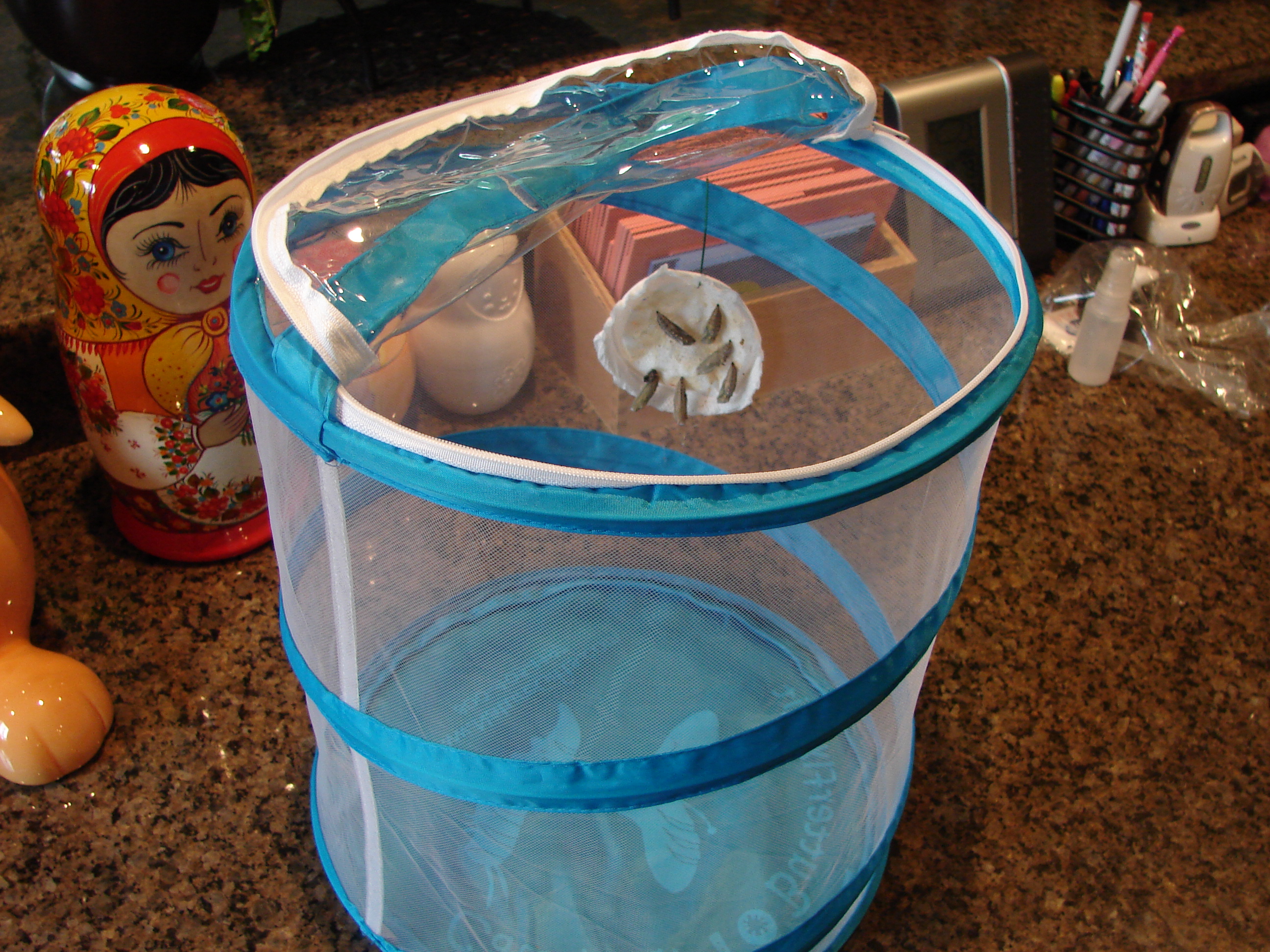 My mom sent Liliana a Painted Lady Butterfly kit, so she could watch the whole process. Without further ado, I give you the photos–in sequence. Fascinating.
